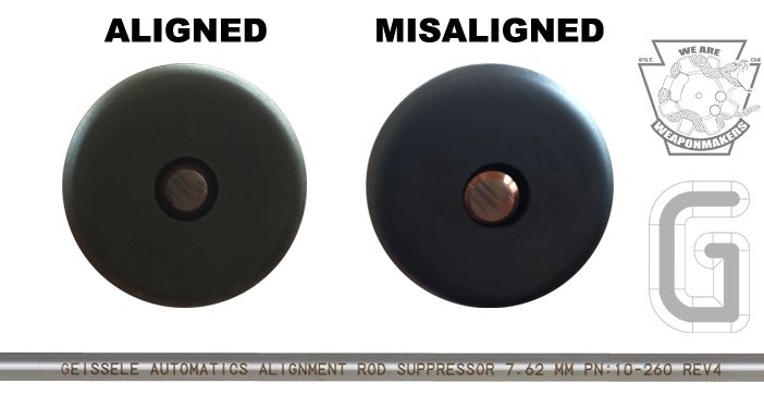 Geissele tyčky na zarovnanie tlmiča (SAG) sa používajú na overenie zarovnania tlmiča s vývrtom hlavne strelnej zbrane. Je dôležité pochopiť, že dĺžka tlmiča je zvyčajne oveľa väčšia ako dĺžka geometrie rozhrania hlavne / ústia ústia / tlmiča. Malá odchýlka na montážnom rozhraní znamená oveľa väčšiu odchýlku výstupného otvoru tlmiča.